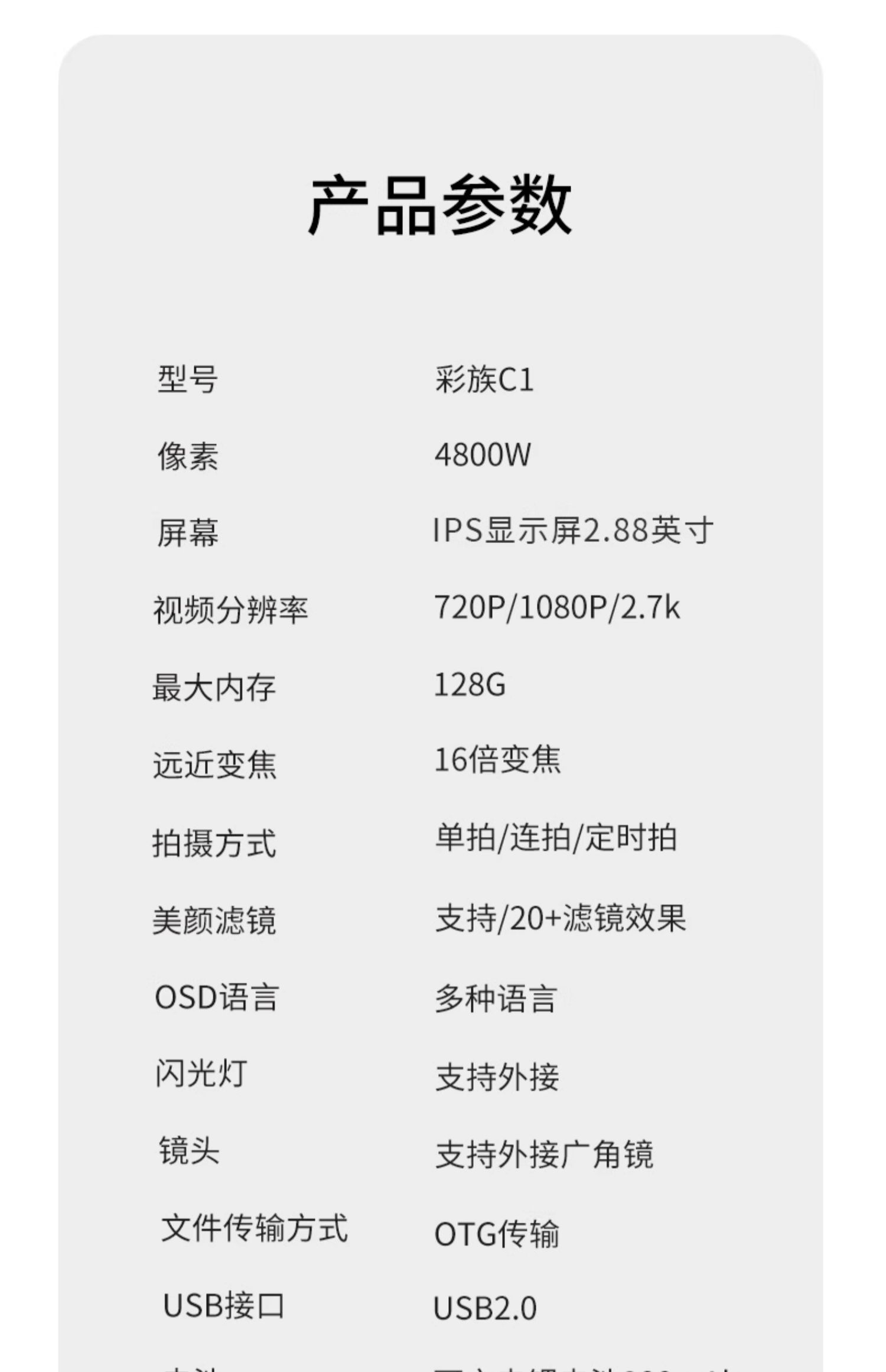 彩族C1学生入门级微单可自拍高清vlog美颜数码相机